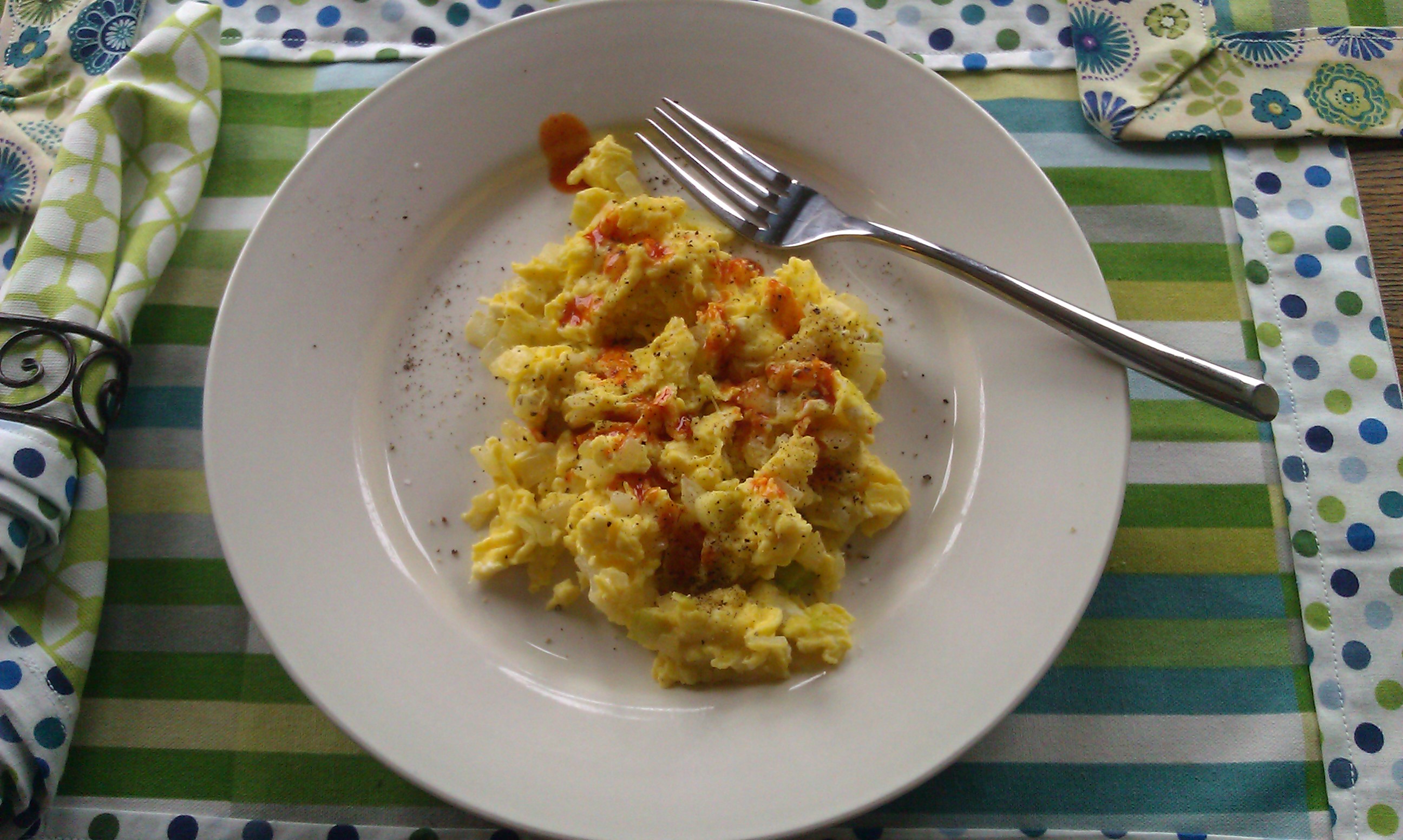 Then I decided to try them cooked.  Everything (in my opinion)  goes with eggs, so I decided on an onion and cattail scramble, served with salt, pepper, and a dash of hot sauce.  (My favorite is homemade, but Cholula is a good store-bought second).  That was a success. The cattails held up well, and didn’t get mushy as I feared.  Next time I’ll try sautéed fennel and cattails with garlic cream sauce as a side.  I even served them to a young friend of my son in a salad and he gobbled them up, not even noticing they were there. Image